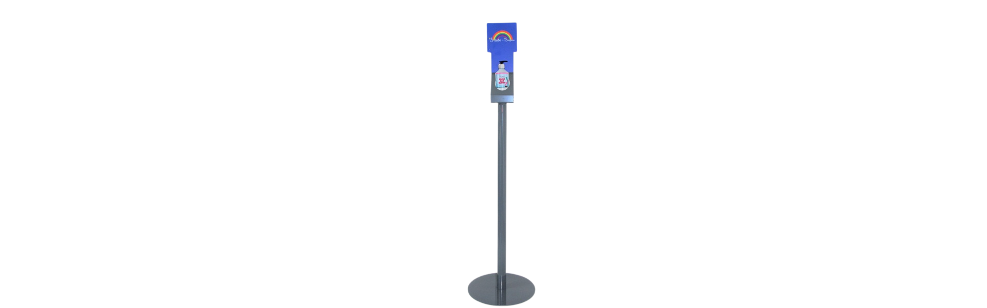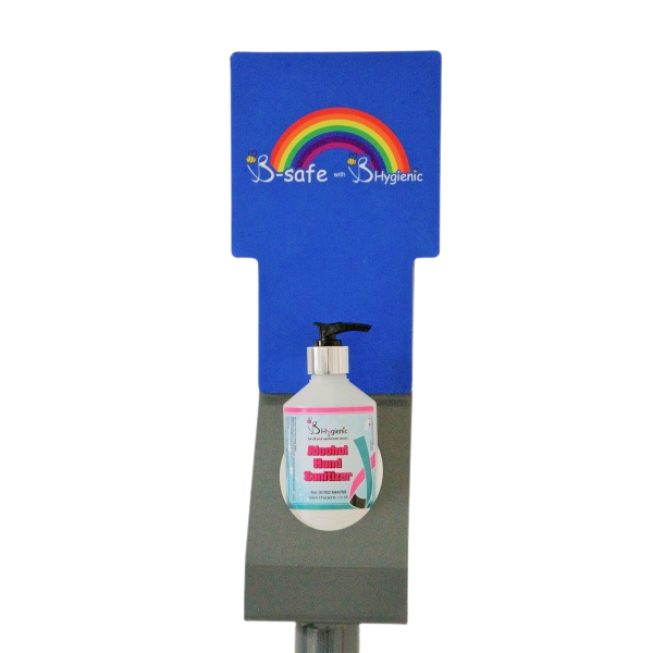Stand is powder coated in grey Bottle holder to fit our 500ml B Hygienic Hand Sanitizer – alcohol or non alcohol (corona virus tested)