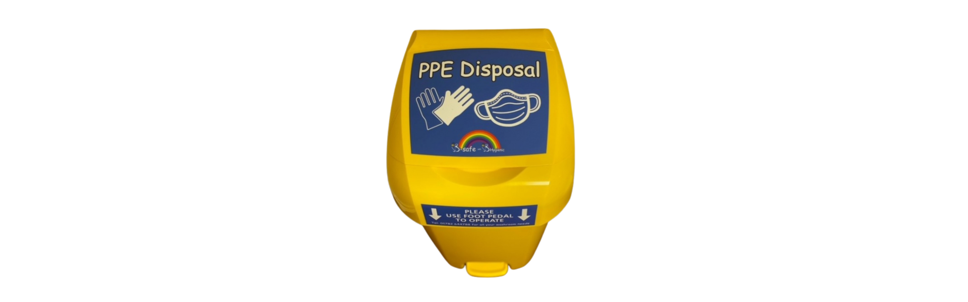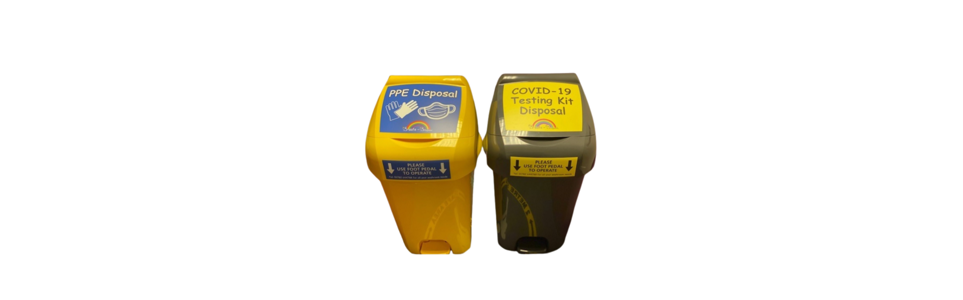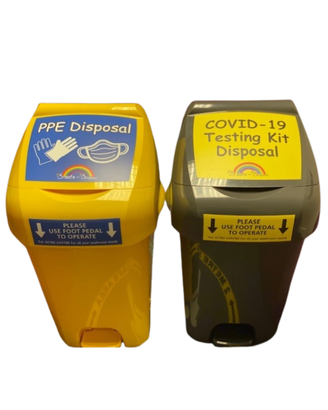 Colourful PPE waste bin.