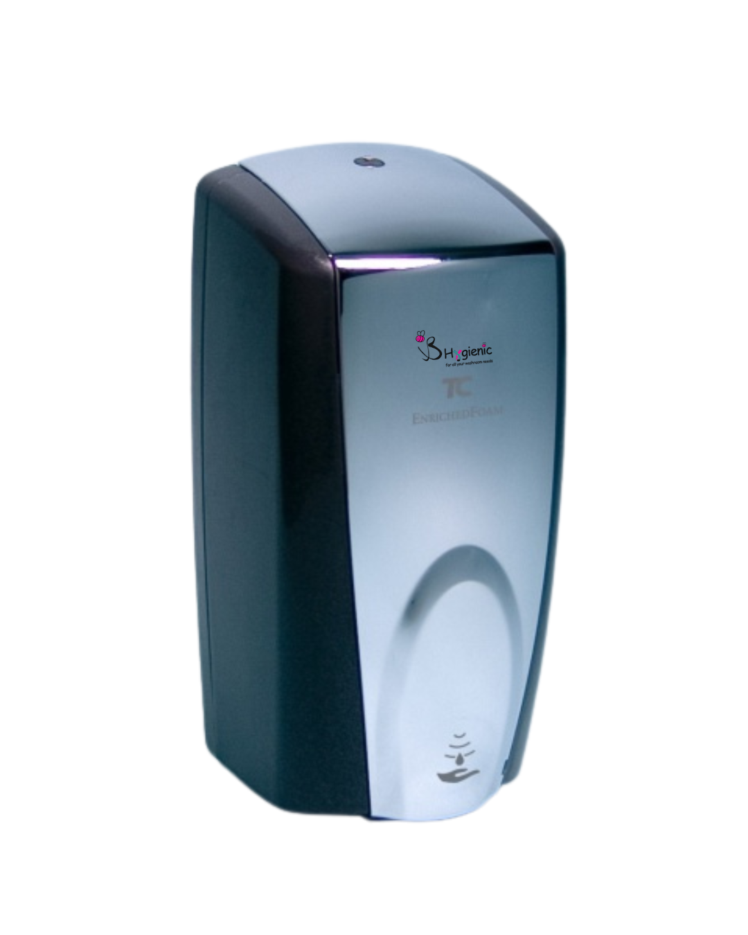 Available in White, Black/Chrome and White/ Grey. This dispenser is available to dispense Antibac soap, Normal foam soap and a Hand sanitiser.